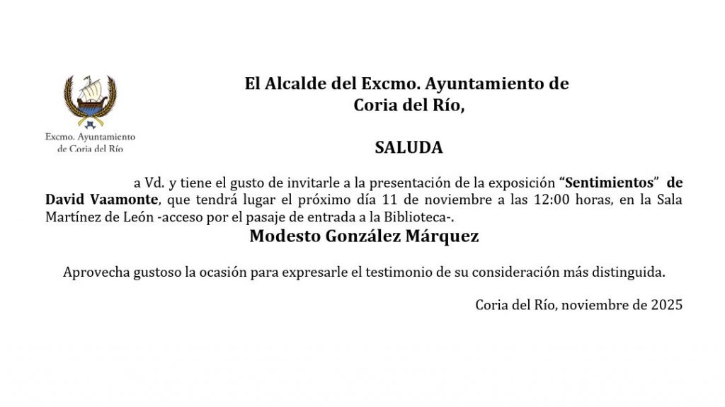 📍 Lugar: Sala de Exposiciones Andrés Martínez de León, Coria del Río