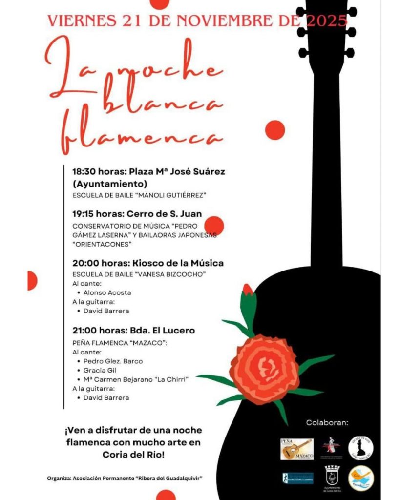 🎶✨Este viernes 21 de noviembre de 2025 vive una noche única con “La Noche Blanca Flamenca”, un recorrido lleno de arte, duende y pasión por distintos rincones de nuestro pueblo. 💃🕺
